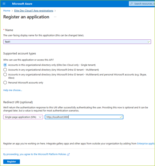 Choose Accounts in this organizational directory only, in the Supported account types section
